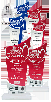 Taylor Real Estate's integrity and reputation has been acknowledged by the community with Taylor receiving the local "Most Outstanding Real Estate Agency" in 2005, 2007, 2008, 2009, 2010 and 2017. Taylor Real Estate was also awarded the prestigious local Business of the Year in 2009 & 2010 and was a finalist in Excellence in Customer Service in 2014 Leading Property Managers of Australia Awards and was a finalist in "The Most Outstanding Real Estate Agency" - 2018 Parramatta Local Business Awards.